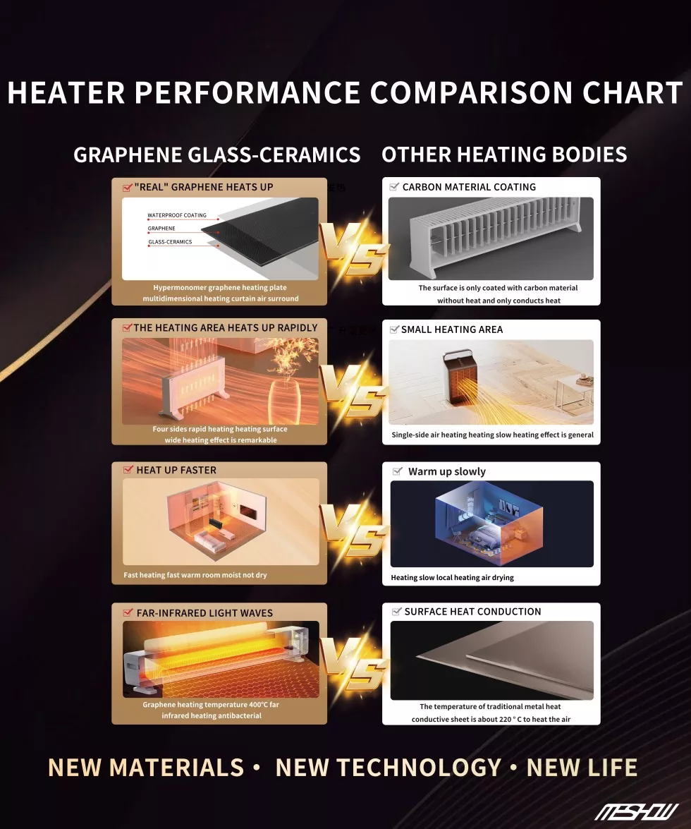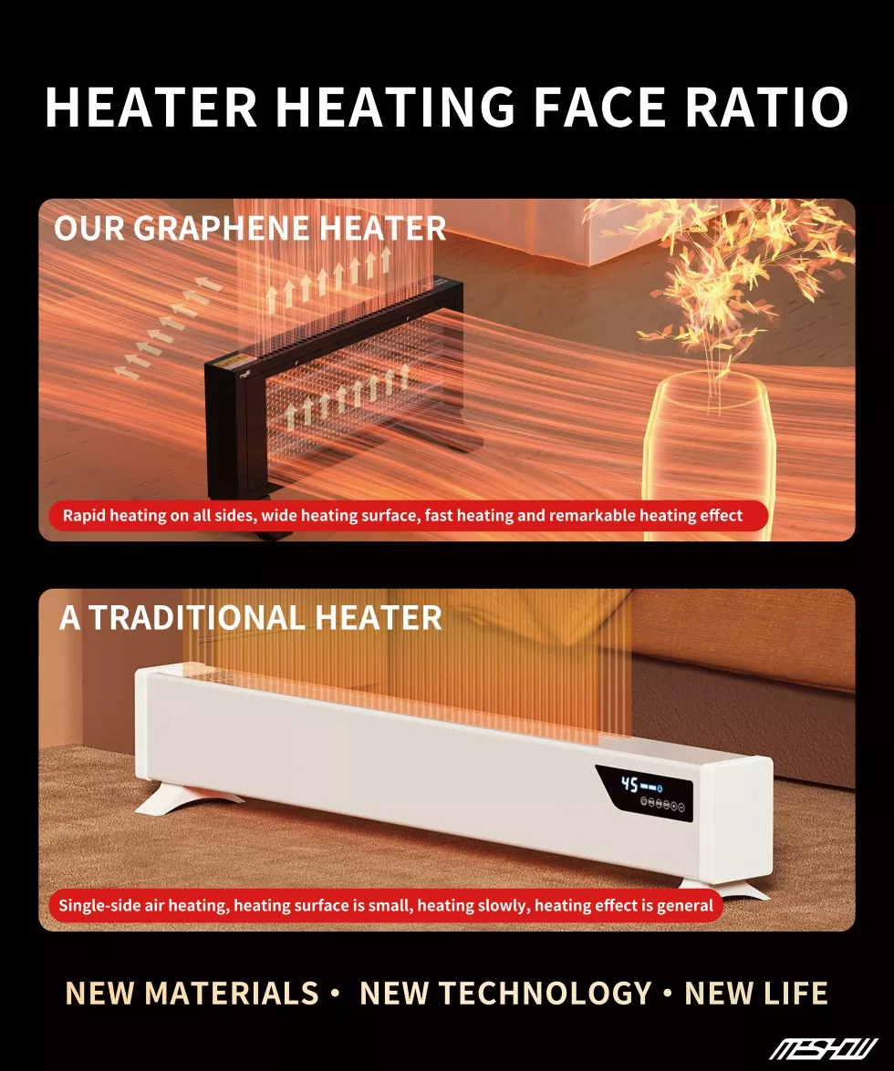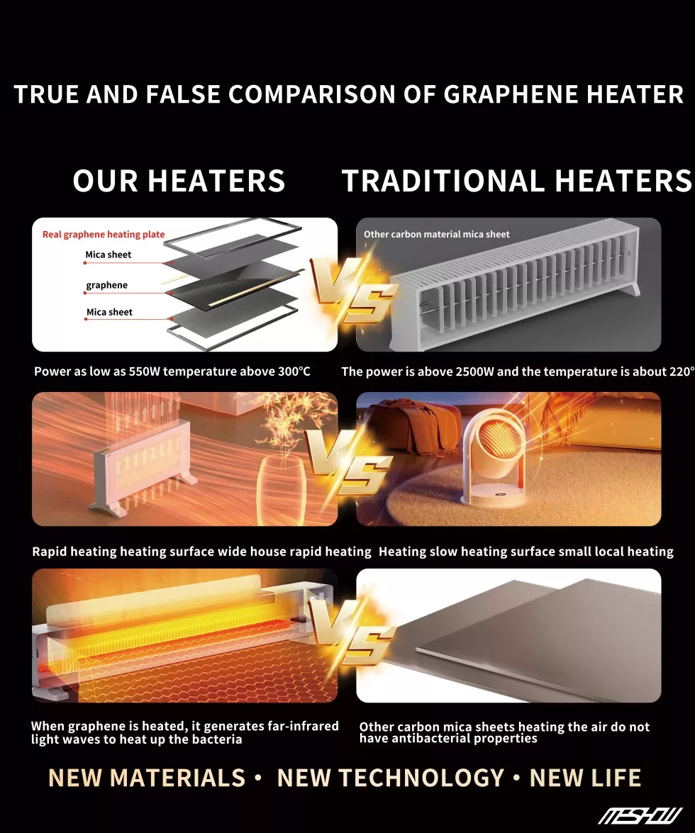 Meshow - це сильний постачальник, який успішно розробив електричний обігрівач білого білого графену 1100 Вт. Графеновий нагрівач забезпечує розумне, тепле та комфортне домашнє середовище для внутрішніх та іноземних користувачів, що веде нову тенденцію опалення вдома та за кордоном!